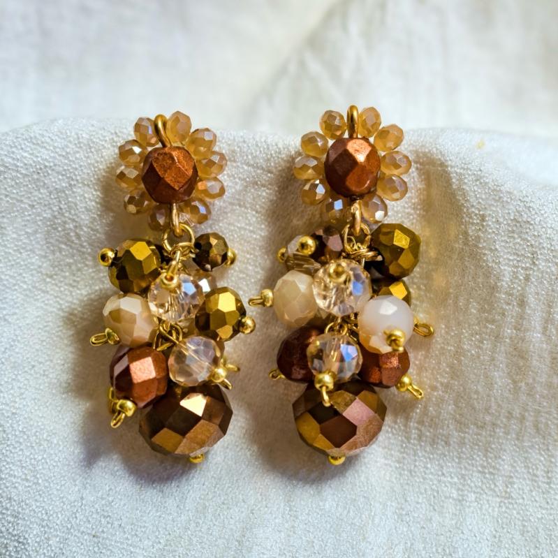 O Brinco cachinho Terra é uma peça feita à mão com atenção aos detalhes, oferece uma elegância sutil e versatilidade para qualquer ocasião. Suas cores neutras combinam tons de bege, dourado e terracota metalizado.
