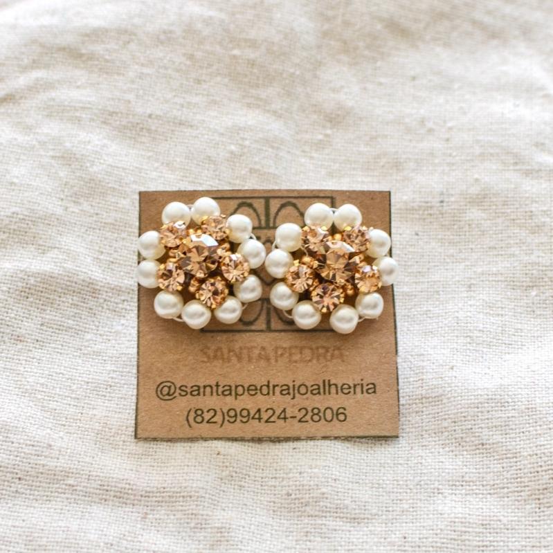 Clássico e atemporal, as pérolas são perfeitas para quem ama classe e versatilidade. O Brinco Mandala Clarisse é uma peça bordada manualmente e produzida com cristais tchecos, pérolas em acrílico e metais banhados a ouro e com verniz protetor.