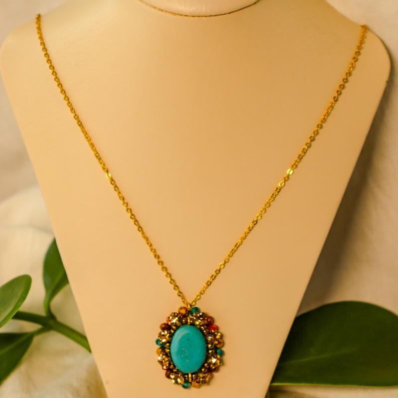 O colar mandala tango é uma peca que combina a beleza única da turquesa com a energia vibrante do tango. Uma fusão de estilo e paixão.